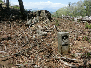観音山というのはむろん仮称で、目的の山へ行く途中の尾根上にぽつんと観音像があったから名づけたものだが、しかし、ちょっとここで言う山頂とは離れすぎている。ところが昨日、この山のすぐ麓に新たな石像を発見して、この名前でもまんざらおかしくはないかとなった。今では滅多に人の目に触れることのないこれらの石造物にまみえるだけでも価値のある山歩きだと思う。