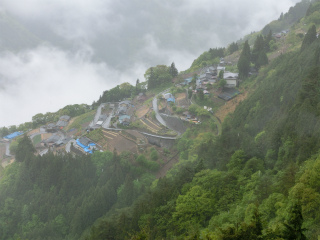 雨さえやんだら辰野の大城山でも登って頂上で昼飯でも食べてからぶらぶらと大鹿村へ行けば時間もつぶせるだろうと考えていたのが、雨脚は強まるばかり、そこで前日に代案として考えていた下栗へ行ってみることにした。こんな天気でもなければわざわざ行ってみることもないところである。