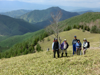鳥居峠から栗屋峠の稜線は樹林が素晴らしいところで、しかも秋にしか歩いていなかったから新緑を楽しむのもいいかとまず思ったが、画家のSさんが参加することになったので、それなら展望があるほうがいいかと、さらに東に分け入って観音山へ2年ぶりに行ってみることにした。