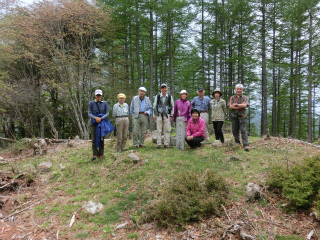 | 源氏山・大峠山(奈良田) 源氏山が麓から目立つ山というわけでもないのに人に知られ、山梨百名山に選ばれたりしたのは「源氏」という名前にあるように思う。名前の由来には諸説あるようだが、いずれも神話に属するようなことで証明のしようがない。しかし、かつては普通に往来のあった峠道がこの山のすぐ北側を越えていたことを思うと、現在の我々が考えるよりはずっと身近な山だったわけで、伝説を生む逸話くらいはいくらでもあったことだろう。 別に何がどうというわけでもない、山奥のちょっとした突起が「源氏」という名前があることで人心をくすぐるのだから名前というのは大したもので、名前がなかったり、「丸山」や「高山」などという平凡な名前を付けられているせいで、まるで登る人のいない、源氏山よりよほど立派に見える山があたりにいくつもある(たとえば添付写真の悪沢岳の手前の山)。 それはさておき、山登りのための車なのに坂道に弱い山旅号は10人の定員一杯を乗せて丸山林道を何とか登り切った。 丸山林道から分岐した林道足馴線の工事で、行くたびに状況の変わっているのが源氏山へ至る尾根道だが、今回も入口のところに崩落のため通行止の看板があった。林道が延長するにしたがって登山口は南に移動し、以前からの尾根道は荒れるにまかせていたのが、数年前に一度手を入れて再び日の目を見たはずだったのが、また荒れたというのだろうか。 林道を歩いていくとその理由がわかった。尾根からそっくり山が崩落しており、林道も半分なくなっていたのである。ただでさえ崩れやすそうなこの山域だから、これからもこういったことは起こると思う。5月の終わりだというのに、かなりの雪渓が残っていて、この冬の豪雪を思い出させた。そのせいによる崩落もあったと思われる。かつて大峠山の西から稜線を北へたどったことがあるが、恒久的な登山道を拓くならこの稜線が確実で登山者も安全だろう。 今回は大峠山だけにするという横山夫妻と分岐で別れ、残りは源氏山に向かったが、このあたりで雷鳴が聞こえて急に天気が悪くなりはじめた。 ミツバツツジがまだ咲いていて、これではイワカガミにはまだ早いかと思ったが、源氏山の最後の登りにかかるといくつも花を見ることができた。このあたりのイワカガミは白花である。かつてはツバメオモトがやたらと多い径だったが、絶えたか、まだ早かったのかもしれない。 源氏山の滞在はわずかで、横山夫妻の待つ大峠山へ戻る。ちょうど正午に頂上に着いて昼休みとなったが、ぱらぱらと降り出して木陰に隠れて昼食をとった。しかし下山時には再び日ざしも出て、しっとりと美しさを増した新緑の中を下ることができた。移り変わりの激しい天候のおかげで、午前中には見えなかった農鳥岳も姿を現していた。 同じくらいの標高でも奥秩父や大菩薩より、山の気が重々しい感じがするのは南アルプス前衛の山に特有の雰囲気で、私が丸山林道にあまり車を乗り入れたくない理由はそこにあるように思う。ちょっと危険な感じがするのである。しかし、その丸山林道を使ってでも、何度もこの山域を訪れるのは、やはりその独特の雰囲気のせいであろう。 |
