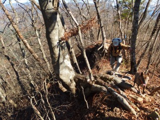 笹子峠からの稜線には、ごく一般的な登山道が通じていた。葉の茂る時季なら多少は見通しも悪くなるかもしれない。しかし峠からは笹子雁ヶ原摺山に登る人がほとんどで、南へと向かう人はまれであろう。