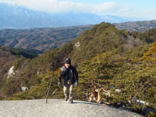| 猪狩山(甲府北部・茅ヶ岳) 今年最後の木曜山行はどこへ行こうかとぎりぎりまで悩んだが、結局、今年も何度も通った羅漢寺山塊に行くことにした。 目指すは猪狩山、といっても私が仮に名付けた山名なので検索しても出てこない。甲府市猪狩町の裏山で、そこからはこのように見える。地元ではれっきとした呼び名があるかもしれないと、いつぞや猪狩町の店先で訊いたことがあるが、瑞牆山ではないことは確かだと言われた。地元だから山のことを知っているなんて昔のはなしなのである。 旧敷島町で整備した「ふるさと自然観察歩道」は獅子平と下福沢の間に通じていて、途中、羅漢寺山を経由する。駐車場のある獅子平からは数えきれないほど歩いたが、下福沢からの径はまだ歩いたことがなかったので、これを登って猪狩山経由で北へ金桜神社の峠へ抜ける計画とした。 下福沢からの径は8割ほどが舗装路歩き、しかもあたりは杉の植林地だからあまり面白くはない。あまり歩く人もなさそうという点では利用価値もあるだろう。 まだ早い時間に稜線に達してしまったので、今ならさほど人もいないだろうと羅漢寺山に寄り道をした。ロープウエイ駅周辺がますます俗悪になっているのは問題だが、眺めだけはいい。ここでは富士山さえ見えていれば観光客にとってはいいのだろう。富士山遥拝所がしつらえてある。しかし歴史的には、ここからは金峰山の眺めこそが本命で、考え方が間違っている。 弥三郎岳を往復したのち猪狩山へ向かう。御岳町から羅漢寺山へは稜線伝いに車道が通じていて、その車道からひと登りで猪狩山へ着く。南アルプス方面が伐採されてヒノキが植えられているが、それがまだ低いので眺めはそこそこある。もっとも昨日は雪雲ですっきりはしていなかった。 この山で昼休みをするつもりだったが、風が強いので、何年か前に新年会をしたことのある林へ行くことにした。誰も知らない宴会場で、風もなく日当たりがいいのでのんびりできるところである。 ゆっくり休んだのち、金峰山の眺めのいい稜線を下って、車道まではわずかな距離だった。 夕方からはロッジにて納会である。たまたま私の友人家族が泊まることになっていたので、彼らも無理やり参加させ、総勢10人での忘年会となった。宴会というのはせいぜいこのくらいまでの人数がいい。 |