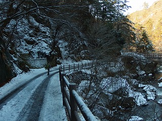 遅い出発だったとはいえ、昇仙峡への道に入ると日蔭はまだ完全に凍ったままだった。こんなときにわざわざ出かける人は少ないから行き交う車はほとんどない。駐車場にも観光客の車は一台もなかった。