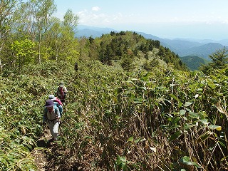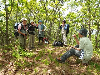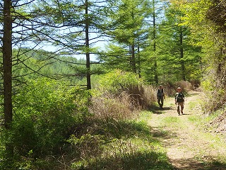 | 四方原山(信濃中島・海瀬) 榊山には2度登ったが、いずれも冬枯れの時季で、頂上一帯の樹林のよさから、新緑がさぞ素晴らしかろうと5月の計画に入れた。 ところが参加者はおとみ山と山歩大介さんだけで、ふたりとも榊山には登っている。それでは方向は同じでも少し近い四方原山にしましょうかと相談して意見が一致した。この山にはおふたりはもちろん私も登ったことがない。 随分前から名前だけは知っている山だが、一等三角点がなければそんなには知られることもなかった山ではあろう。茂来山の尾根続きだから縦走していけばいいわけだが、自家用車利用ならやたらと長い稜線を往復しなければならないのでいつかはと思いながら後回しになっていたのだった。 『信州ふるさと120山』(信濃毎日新聞)というガイドブックがある。普通のガイドブックにはない山が出ているので、何度か参考にして出かけたが、そのたびにこれはおかしいのではないかと内容には疑問を持った。今回も思ったがそれは後述する。 この本に四方原山を白岩から登るルートが出ていて、フーンそれならそのルートでいずれ登ってみようと思っていたら、たわらさんが去年の秋にこれで登ったと聞いた。そこでこの秋にでも木曜山行で計画してみようと思っていたのを前倒しすることになったわけである。新緑を楽しもうという目的は榊山と変わることはない。 さわやかな五月晴れになった。登山口へ向かう道々ですでに新緑は十分に美しい。登山口への林道沿いにある、北相木村で立てた道標に惑わされて、おかしいなと思いつつ林道を上がり過ぎ、途中で気づいて引き返した。 ここが登山口だろうというところには四方原山への矢印が登山道方面とは逆を指しており、つまりそれは林道の最高所まで車を入れて登る人のための道標だったわけだが、もしそうして林道のどん詰まりまで車で行けば、四方原山へはものの30分で着いてしまう(もっとも、途中で土砂崩れで通行止)。その林道を歩いて下ったので、やっと道標の矢印の意味がわかったのである。 やたらとコゴミの多い沢沿いを何度も岸を変えながら登っていく。ピンクテープはぶら下がっているものの、この手の径には慣れている我々でもところどころで立ち止まって薄い踏跡を探すことになった。もっと緑が濃くなれば難易度はぐっと上がるだろう。たまに現れる北相木村の道標は立派な鉄製だが、必要なところにはなく、どうでもいいところに立っている。 落葉松の倒木にはしばしば行く手をさえぎられるし、標高差がたいしたことはないといってもとても一般道と言えるものではない。 たどり着いた主稜は私好みの広い尾根だが、ほぼ落葉松だけで、新緑は美しいといっても多彩さには欠ける。四方原山の小広い頂上は悪くない場所だが、まだ昼には早かったので、西へと進み、お地蔵さんがたっているところで昼休みとした。 少し戻ったところから林道への道標があって、ほんの5分で林道に降り立つ。この林道はそもそも地形図にないし、その後も何度か分岐があるのにむろんそこには道標はないのでそのたびに悩むことになった。 これが前記の本では「里山ハイキング程度、登山道整備され難所等なし」とあるのだからおかしな話である。まあ、初心者がわざわざやってくる山ではないから実害はないかもしれない。 1時には車に戻るという短時間で終わったが、5月の山を楽しめた。 |