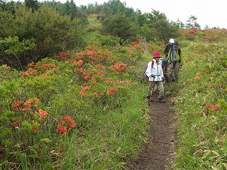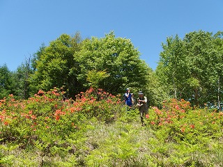 今年は季節の移ろいが早い。新緑というには緑が濃くなっていたが、それでもミズナラなどはまだまだ淡い緑だった。かわりに例年ならもう少し遅いはずのレンゲツツジが花の盛りになっていた。