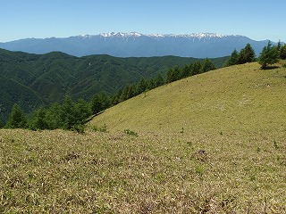 去年の秋、美ヶ原の茶臼山の稜線上の、風越という名前の三角点のある小突起に横山夫妻と登ったとき、枝越しに見える物見石山から東に一段下がったところに笹原で見晴しの良さそうな山が見えた。