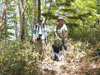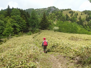 稜線上は幸いさほど背の高くない笹で、わずかに踏跡もあったので、これなら大丈夫と目的の山を目指した。