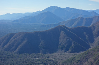 | 王岳南稜・吉澤巌(河口湖西部) 社会人になって間もないころ、大学の出身ゼミが西湖の民宿で夏合宿をした。まだ顔見知りの後輩がいたし先生とも親しかったので、夕食後の自由時間に乱入した。女子学生が多かったから、要するにそれが目当てである。 さんざん飲んで騒いだ翌朝、民宿の洗面所の窓から、ところどころ岩の露出した険しい山がまだ酔眼朦朧とした目に映った。当時は山歩きをしていなかったから山の名前などに興味はなかったが、御坂山地の河口湖に面した、わりと穏やかな山容しか普段見ていなかった私は、同じ山地でも随分雰囲気が違うなあと思った。御坂山地は西湖に面した十二ヶ岳から王岳にかけてがもっとも切り立っていて険しい。 その後、山歩きをするようになって、その民宿から見ていたのは王岳南稜だと知り、ひときわ目立っていた岩峰が吉澤巌という名前だったことも戦前のガイドブックを読んで知った。 王岳にはさんざん登ったが、王岳南稜から根場へ下る径があるのはずっと知らないでいた。これを使えば根場を基点に王岳登山の周遊コースがとれると、木曜山行で出かけたのは7年前だった。http://yamatabi.info/tawara-20081204.html 南稜から根場へはおそらく吉澤巌の北の鞍部から下るのだろうから、ついでに岩のてっぺんを往復してこようと思っていたのだが、そのずっと手前で径は稜線を離れて下りだし、結局吉澤巌には登らずじまいになってしまった。 縁が結べないまま年月が流れ、やっと今回の計画である。王岳南稜はすっきりと延びた私好みの尾根だから、根場から吉澤巌に登ったあとこれを末端まで歩いてみることにした。 去年知り合ったキレット小屋のKさんが泊まりがけで遊びに来てくれ、ちょうどその翌日が木曜日で、それならと山行にも参加してくれることになった。オフシーズンにはヒマラヤやアンデスに出かけているというKさんだが、たまにはこういった山もいいだろう。 富士山が見えてこその山域だが、天気は最高だった。7年前に下ったはずの登山道の様子はまったく記憶にない。ほとんど一般登山道といってもいい径である。王岳の100m下で稜線に出て吉澤巌へは下ることになる。 もう少し簡単な道筋があるのかと想像していた吉澤巌は、立木を頼りによじ登るしかなかった。その頂上からは展望はすばらしく、最高の天気の日に懸案のピークに立ててうれしかった。狭いので5人がゆったりと座るわけにはいかないが、それでもこの展望である、1時間近くをそこで過ごした。 南稜の下りには、古い林道に出るまではしっかりした踏跡があったが、そのあとはか細くなった。4等三角点を見ると尾根は青木ヶ原の溶岩の押し出しにぶつかって終わる。ここでの地面と植生の激変は実に面白い。 |