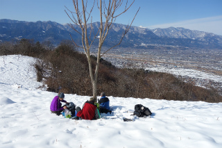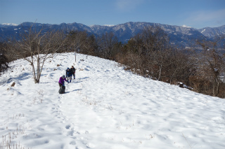 | 浅間山から桜峠(市川大門) 今週初め、おととしほどではないにしろ、私がこの地に来てからは、それに次ぐような積雪となった。まったく無雪の状態から一晩で40センチも積もったのには驚かされる。翌晩にもさらに15センチぐらい積もった。もっとも寒い時期の積雪だからちっとも融けず、私の近所では車同士がすれ違うにも苦労するし、別荘地の道は雪かきが追いつかないから、歩けるところも限られている。 今週の木曜山行の滝戸山は、林道が通行止の間にきちんと下から登ってみようという計画だったが、それは雪がほとんどないことを前提にしてのことだった。これだけ降れば御殿滝まで車が入りそうもないし、となると標高差800mをラッセルして登ることになる。 これではとても無理なので、ぐっと標高を下げて浅間山に登ってみることにした。桜峠から西の稜線は私も初めてで、桜峠あたりではかなりススキが繁茂していて踏跡も不鮮明だった記憶があるが、冬枯れの時季ならさほどでもないだろう。それでも念のためにとネットで調べてみると、ここ数年、この稜線でトレランの大会が開かれているという。なんだ、それなら何の問題もない。磁石で方向を確かめるようなトレランの大会などないからである。それにしても最近は風当りが強いから、登山者の少ないこんなところにコースを設定するしかないのだろうか。 市川大門のWさんがこの計画を知って久しぶりに参加してくれることになった。聞けば雪の降る直前にも登ったばかりだというので恐縮なことだが、はるばる八ヶ岳から自分の地元の山へ来てくれるのだから放ってはおけない、豚汁までごちそうしてくれるというのでさらに恐縮する。これぞ「おもてなし」である。 市川大門まで下ればさすがに雪などないだろうと思っていたのは浅はかで、目指す山は真っ白だし、車道にもまだ雪が凍り付いて残っていた。これではとても滝戸山というわけにはいかなかっただろう。 歌舞伎公園からは、案の定まったく問題のない径が通じていた。動物の足跡しかない雪は適度に締まっていて歩きやすい。ところどころで重い雪に倒れた竹に邪魔されるのはこのあたりの山らしい。 浅間山が近づくと西側はすっかり伐採されていて大展望まで楽しめたのは意外な収穫で、径も良く展望も良くで、これなら誰もが簡単なハイキングを楽しめるだろう。 無風快晴の浅間山だった。眺めのいい雪原に陣取って、真っ白の南アルプスや八ヶ岳を眺めながら、Wさんが自家製味噌でつくったという熱い豚汁をごちそうになり、長く過ごした。 桜峠からは旧道を下ってみる。倒木で大変なところもあったが、径形ははっきりしていた。ゴールはみたまの湯で、移動もせずに入浴なんて珍しい。露天風呂からもまた大展望を楽しんだ。山梨県一の展望風呂である。 |
