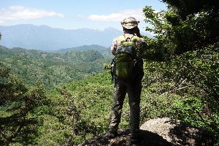 | 増富山地西部縦走(瑞牆山) 今週の木曜山行は虫倉山の予定だったが、参加者がおとみ山だけだというので、それなら春に一緒に登ったばかりだから、なにもこだわることもあるまいと別の計画を練ることにした。 虫倉山の冬枯れの樹林がとても良かったので、これが緑に覆われたらさぞすばらしいだろうという、ごくごく私的な興味でこの時季に計画を立てたわけだったが、ここのところ鷲ヶ峰、小日向山と、続けざまに隣近所の山に行っているので、まあ、だいたいあのあたりの新緑は満喫していて、ちょっと新鮮な山へ行ってみたくなったのである。 そこで思いついたのが最近執心している増富山地であった。ここなら近いので、車2台で出かけ、普段ならできない縦走ができる。 まず神戸の旧隧道へ車を置き、本谷川へ向かう。先般探った増富温泉から金山への旧道は、今では針の山への歩道から分岐して東へ続くが、おそらくかつては津金楼あたりから本谷川の右岸の高みに径があったのではないかと想像される。 したがって針の山の歩道から西へ分かれて続く径が残っているはずで、その入口のように見える分岐は先日確認してあった。それをたどれば、1322.1mの三角点(点名増富)から南下する尾根をまたぐから、そこから三角点に向かって登ればいいと考えたのである。さらに北上し、主稜に出たら神戸へ向かう。 しかし考えていた径はすぐに途切れ、落ち葉の中に埋没してしまった。そこで適当に急斜面を登っていくと、ほどなく山腹を巻いてきている径に出た。古い径は少し高いところに通じていたらしい。 尾根をとらえたらそれを登るのみである。大きな花崗岩を縫いながら登っていくのはこの山域の特徴で、そんな露岩の上からは眺めも開けた。キノコ採りか猟師の径か、そこそこの踏跡が続いている。 すっきりとした晴れだが気温が低い。立ち止まると寒いくらいである。この気温のせいだろう、今もっともにぎやかなはずの春ゼミの声がまったく聞こえない。 先日ひとりで歩いたばかりの、和田からの尾根に出たら、わずかで神戸への分岐である。途中にある大小の突起をことごとく巻いて径が続く。道標さえあれば立派な登山道である。 和田峠で車道に出てからがむしろ難しかった。地形図にない林道があったからで、しかし、その林道の途中はまだ伐採地に植林されたばかりで、大展望が得られた。普段見慣れた山々でも、少し見る位置が違っただけで新鮮に見える。 連れて行った犬のココがこの林道あたりでどこかへ消えた。また鹿でも追っかけているのだろうと、木陰で小一時間昼寝をして待ったが一向に現れる気配がない。 仕方がないと先に進むことにした。林道に惑わされているので、このあたりからは難しかった。まあそれでもなんとかデポした車にたどり着き、峠を越えて出発点に戻ると、ココは車の下で寝そべっていた。バカ。 |