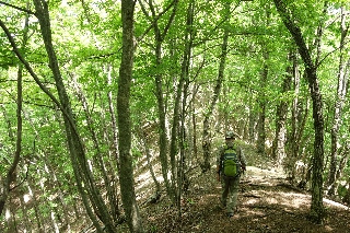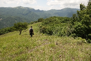 | 虫倉山〜小日向山縦走(霧ヶ峰・和田) この週はにゅうの予定だったが、木曜日は悪天の予報に順延したら、早朝、名古屋からNさんがやってくることになった。ならばその途中で合流できる中信高原が位置的に最適である。またしても計画の変更である。プランは無数に考えられるが、諸々を勘案して虫倉山と小日向山の縦走をすることにした。私にとっては小日向山は今年2回目、虫倉山にいたっては3回目となるのだが、いい山は何回登ってもいいし、Nさんは両山とも初めてなのだから、きっと楽しめることだろう。 7月になった日にふさわしい、いかにも夏らしい天気になった。標高1500m内外を上下する縦走だから、日影でじっとしていれば真夏といえどもさほどの暑さではないのだが、昨日の暑さはなかなかのものだった。ことに日向では厳しかった。帰ってから体重を測ったら2キロ近く減っていたから、2リットルもの汗をかいたことになる。 虫倉山への登路は前2回とは少々変えたが、これはまあ簡単で、順調に虫倉山へ着いた。ここから小日向山までは勝手知ったる道筋だから、目をつぶっていても歩けるくらいである。緑に覆われた森はやはりすばらしい。 小日向山から西は初めてだったが、葉が茂って行く先の見えない夏だから、進路を定めるのが難しいところもあった。国道脇にデポしておいた車まで600mの下りである。だんだん暑さが増すのに閉口しながらも、予定どおりの道筋で車にたどり着いた。人気の山域に接していながら、全行程でひとりの人間も見なかった。こんな山があるのをうれしく思う。 かねてから考えていた縦走が実現できて幸いだった。Nさん、ありがとう。 |