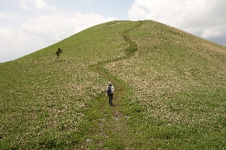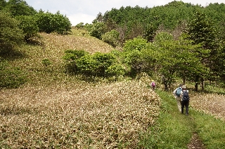 | 和田峠〜三峰山(霧ヶ峰) 扉峠から三峰山を越えて和田峠までは、稜線の雰囲気の良さや展望の良さなど、霧ヶ峰や美ヶ原界隈でも一二を争うハイキングコースだと思われるが、八島湿原から蝶々深山へのコースあたりに比べると段違いに歩く人は少ない。もっとも最近は、はやりのトレイルランやロングトレッキングコースになっているようだから、日によってはにぎわうこともあるのかもしれない。 これまで扉峠から三峰山には何度も登ったが、一緒に行った人たちには和田峠まで歩いてもらったことはあっても、私自身は車の回収の都合上、三峰山から和田峠の稜線を歩いたことはなかった。そんな自分の興味もあって、今週の木曜山行ではそれに接待から和田峠への中山道歩きも加えて計画してみたのだった。 私が三峰山に初めて登ったのは、鷲ヶ峰に横山夫妻と登った日だった。13年前のことである。頂上から見えた三峰山に、ついでにあれも登ってしまいましょうと、ハシゴ登山をしたのである。ことほどさように、三峰山はビーナスラインの三峰山展望台から登る分には、ついでに登れる程度の山である。しかしさすがにそれでは物足りないと、自転車で車を回収するようになってからは、扉峠から歩くようになったのである。 さてその横山夫妻が今回は参加してくださることになり、それに常連Sさんが加わった。天気予報は雨こそ降らないようだが、一日中曇りだという。朝起きると濃い霧で、少々気勢は上がらない。そこで、予定より遅い出発とし、もし現地に行ってもやはり霧が濃いようなら、三峰山は割愛し、接待から和田峠への中山道歩きだけにしましょうと出かけた。 ところが高速道路に乗ったら霧はみるみる晴れ、日差しも出始めた。雲が多くとも青空ものぞいている。霧ヶ峰まで上がったら、今しも三峰山にかかっていた雲が取れるところであった。こうなったら割愛するのはむしろ中山道のほうで、和田峠から三峰山に登るにしくはない。 ビーナスラインが近接しているのでエンジン音が気になりはするが、その車道をこちらも使っている以上仕方がない。行く手に現れる三峰山の姿は扉峠側からより優れていると思った。もちろん径の状態は上々で、それだけでもこれは第一級のハイキングコースである。車を2台用意して和田峠から扉峠へと歩くなら、それも遠望の利く好天の一日なら、こと山岳展望については他の地域では決して得られない満足が得られるだろう。それはむろんこの山の絶妙な位置による。 |