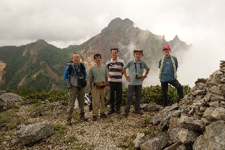 | ツルネ東稜〜キレット小屋〜権現岳(八ヶ岳東部・八ヶ岳西部) 担当している『山梨県の山』(山と溪谷社)が新しくなるので、これまでの真教寺尾根を登って県界尾根を下るという、赤岳のコース設定を変えようと思った。このままだと日帰りではきついし、といって2日がかりだと短い感じがするのである。 むろんガイドブックのコース設定は一例なのだから、各自が勝手にアレンジすればいいわけだが、県別のガイドブックのなので一応県内で完結する必要があるのが辛いところ。となると真教寺、県界のどちらを登るにしろ、2日がかりとなれば選択肢はキレットに下る以外にないのである。となるとキレット小屋に泊まって権現岳を越える縦走になる。 その取材を兼ねて木曜山行で出かけたのは去年の初秋で、その際、たまたま我々だけの貸し切りだったこともあって、小屋番のKさんと親しくお話することができた。そんなことから、Kさんには仕事のオフシーズンに私のロッジに泊まってもらい、木曜山行で一緒に吉澤巌に登ったりもしたのである。http://yamatabi.info/2016a.html#2016a2 小屋で話しているとき、ツルネ東稜の話が出た。しっかりした径だという。そのルートがあるのは知ってはいたが、冬季に八ヶ岳主稜に登るバリエーションルートくらいにしか思っていなかったので、それ以外の季節に登ることは考えたことはなかった。しかしそれが登れるならキレットへは最短で、小屋一泊で赤岳か権現岳に登るには、我々の体力からすると好都合である。そこで、今年の小屋泊まり山行に、ツルネ東稜から権現岳に登る計画を立てたのであった。 今週初め、ぱっと夏空が拡がり、西日本には梅雨明け宣言が出て、ほどなく関東くらいまでは梅雨明けするだろうと思われた。余裕を持たせて3日間のどこかで行くことにしてあったが、そのどこでも、もうさほどの違いもあるまい、予報も晴れが続くようになっている。参加予定者に聞いたら、木金のほうが都合がいい人が多かったので、それに決めた。 ところが日が近づくにつれて予報が芳しくなくなってきた。もうそれでも出かけるしかない。遠方からの参加者を待って、美し森の上を出発したのは、すでに11時近くになっていた。雲は多いが、弱い日差しはある。 出合小屋までは地獄沢を何度となく渡ることになるが、これが増水していれば厄介なことになるだろう。ツルネ東稜がキレットからのエスケープルートにならないのは、要するにそれが理由であろうと思われた。エスケープする必要があるときは悪天だろうから、東稜は下れたとしても、その先で沢が増水していればどうしようもない。 沢沿いの径が長いが標高はたいして上がらない。その分、東稜に取り付いてからの急登といったらなかった。燕の合戦尾根どころではない。蒸し暑いせいもあってとんでもない量の汗が出る。ようやく傾斜が緩んだところで一休みしていたとき、突然天狗尾根が霧の中から現れて、やっと自分たちのいるところがどういう場所なのかわかった。しかしそれも一瞬で、再び霧が風景を隠した。 森林限界がすなわちツルネの一角であった。ここで一気に眺めが開けた。幸運なことには雲がかかっていたのは山梨県側だけで、長野県側は晴れていたのである。急登をこなした甲斐があったというもので、疲れの吹き飛ぶ一瞬とはこのことを言うのであろう。歓声があがる。雲が次々に流れ、山の風景をどんどんと変えていく。足元にはおびただしいコマクサが今が盛りと咲いている。これは、ここに長居をせずにはいられない。 風景を堪能したのち下ったキレット小屋では、すでに卓におつまみが並んでいた。ビールまで並んでいる。聞けば、越冬して期限のきたビールだからこれでよければ飲んでしまってもらえないかという。 「それじゃ悪いよ」と言いつつ、すでに指はプルトップにかかっているのであった。結局、十数本あった越冬ビールは力を合わせてすべて処理してしまった。 去年に続き、今回も我々の貸し切りで、余裕たっぷりに布団を引かせてもらい、ゆっくりと休ませてもらった。Kさん、ありがとうございました。 夜半、屋根を打つ雨音がしていたが、朝には上がって、出発時には完全にやんでいた。ツルネでは背後に赤岳も現れて、このまま天気はよくなるかと思われたが甘かった。権現岳への途中では雨具を取り出すことになった。以後、降ったりやんだり、大雨にこそならなかったが、下山するまで雨具をしまうことはできなかった。 高山の楽しみは森林限界を越えた稜線を眺めを楽しみながら歩くことにこそあって、その意味ではいかにも残念ではあったが、これも山歩きである。 十二山尾根を下るつもりだったが、この天気ではどうしようもない。三ツ頭からアトノ尾根を下ることにした。これを下るのは私にとってはほとんど四半世紀ぶりである。やたらと長く歩かされた印象があったが、こちらが若くなくなった分、もっと長く感じられた。 正午には下