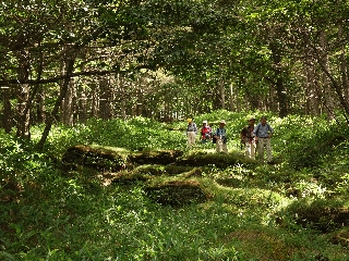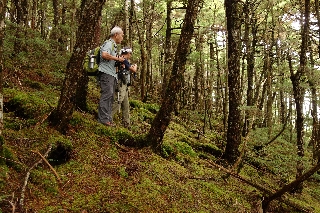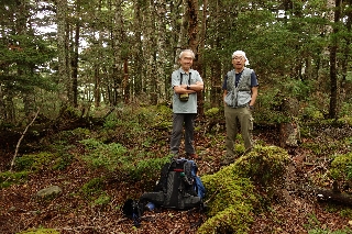 頂上はダケカンバが何本かある、それまでに較べると明るい小平地である。昼のひとときを過ごしたのち、横八丁の径へ向かって適当に下ったが、その間の林床の苔がすばらしかった。