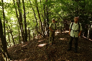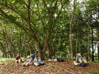 5月に探った金山への旧道をたどり、針の山の尾根を下ってくるという算段だったが、他の季節なら人っ子ひとりいないだろうに地元のキノコ採りが数人いた。よそ者の入山はこの季節ご法度ではあるが、山歩きが目的なのだから許してもらう。