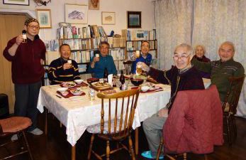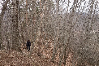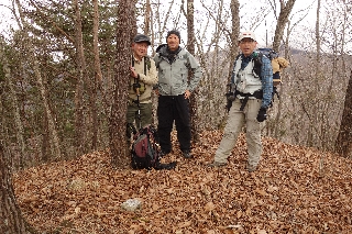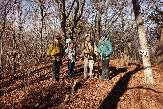 | 黒森山(増富山地)(瑞牆山) 年の最後の木曜山行は、最近では近所の山を軽く歩いてから納会という流れになっている。 午後からは雨模様だというので、午前中で済みそうな山を考えて、11月の木曜山行で木賊の頭に変更してしまった増富山地の計画を思い出した。今年の須玉の秘峰探索は増富山地に集中していて、その総仕上げとしてもちょうどよい。 目標は黒森集落の南東にある1405.9m峰で、三角点名が「黒森」だから黒森山と呼んでいるが、地元での呼称があるのかもしれない。私にとっては10年ぶりの再訪となる。ただこの山に登るだけではあまりに簡単すぎるので、和田から馬蹄形に縦走して最終的に達するというルートをとった。 この手の山は葉の落ち切った時季が行く手が見えるので格段に簡単になる。昨日のルートのもっとも難しい部分は、増富山地主稜から黒森山への稜線に移るところだが、行先が見えているのですんなりといった。 黒森山は美しい広葉樹に覆われた山である。この時季、地面がまったく見えないほど落葉で埋まった山腹もまた美しい。予定どおり午前中には頂上に着いたが、風が強いので、少し東に下って昼休みとしたのち、落葉を蹴散らして一気に下った。 夕方からはロッジにて総勢8人での納会となった。にぎやかに世を語り人を語って(山の話がほとんど出ないのがいいところ)夜が更けていった。 |