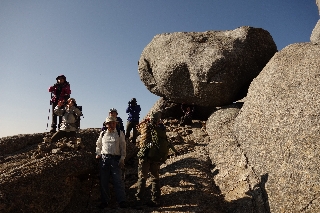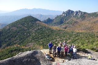 | 大日岩とトッコ岩(瑞牆山) 大日岩には木曜山行で過去に2回出かけていてる。 http://yamatabi.info/2010g.html#2010g3 http://yamatabi.info/2011f.html#2011f2 それもかなり以前のことになったので、久しぶりにご機嫌伺いをしようとこの初夏、シャクナゲの花期に計画したが悪天で中止、しかし花の時季を逃すと次は一年あとになってしまうとひとりで出かけて、その際のことは参考記録として書いた。 http://yamatabi.info/2017e.html#2017e3 大日岩だけでは面白くないと、トッコ岩もついでに見てきたのだが、あいにくの天気で悔いが残った。そこで今度は秋に行こうと、早く計画を発表したら、それが功を奏したのか偶然が重なったのか、昨今稀に見る、定員オーバーにならんとする大盛況となった。それならそれで天気が心配だが杞憂におわった。願ってもないような好天が訪れたうえに、今季初めて富士山がそれらしい雪化粧をした朝になったのである。 横浜や東京組との合流があるので遅い出発になったが、瑞牆山荘前の広い駐車場をほぼ満杯にした人たちはすでに出たあとで、登山道が静かだったのは幸いだった。まあ、いかに人が多くとも、瑞牆山への径から小川山へと分岐すれば人っ子一人いなくなるわけだが。久しぶりに登った里宮坂はてっぺんのカラマツが伐採され、かつてのような瑞牆山の大観を望むことができた。しかしこれだけ伐ったのならあと数本伐ればいいのに。 八丁平付近からは新雪を見るようになった。つい先日の台風のせいだろう、倒木に行く手をさえぎられたりもする。そして苦労しただけの甲斐のある展望に恵まれたのは添付写真にあるとおり。この、大日岩の西側の広場で八ヶ岳や瑞牆山の眺めをほしいままにしながら遅い昼休みをした。 大日岩を東に回れば、金峰山の胸のすくような稜線が五丈岩に向かって昇っている。そして新雪の富士。またしても足を止めてしまう。今回のおまけ、トッコ岩にシャクナゲを藪を分けて達すると、そこからの富士もまた良かった。 しかし、遅い出発だったにもかかわらず、あまりの好天についつい各所で長居をし過ぎ、富士見平からの下りではヘッドランプのお世話になったのはちょっとミスだった。 |