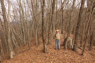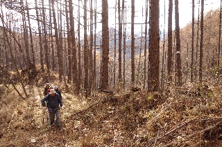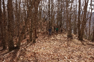 | 笠無(谷戸) 笠無は、端正な笠形を成す山容から笠無となったと聞いたことがある。周囲を日本を代表するような山山に取り囲まれている位置にあっては、その優美な山容も好事家の目にしか留まるまいが、こういった山に興味を持つと遊び場は無限である。 その笠無が自宅の2階から見え、いつかは登ってみたいと思っていたヤマネコさんだったが、高さはなくとも、八ヶ岳の一般ルートを登るようなわけにはいかない。そこで木曜山行で計画してくれとリクエストしたのだった。 せっかくのリクエストだから笠無を丸かじりしようというわけで、北側のクリスタルライン八ヶ岳展望所から登って、笠無を越えて、笠無最長の尾根を藤岡神社まで歩いてしまおうという計画を立てたが、あいにく午後には雨が降り出しそうな予報であった。 そこで午前中にも終われるくらいのルートに変更し、出発点は変わらず、下るのは樫山峠とした。水曜日の催行としたのが災いしてか、天気予報が災いしてか、当のヤマネコさん以外に参加者はおらず、二人旅となってしまった。これで午後から降るのかしらというような朝の青空で、当初の計画でもよかったかなと思ったが、結局、午後早くには曇天になった。 ただでさえ入山者の少ない笠無でも、八ヶ岳展望所から登る人はさらに少ないだろう。数年前に初めて登って以来、ちょっと笠無へ、というときにはこのルートを使っている。笠無への最短ルートだと思う。 葉の落ち切った林からは白い八ヶ岳や南アルプスが望め、冬にもっとも近い晩秋の雰囲気がすばらしい。山の北側ではうっすらと雪の積もった落葉を蹴散らして歩いた。 頂上の西で広大な八ヶ岳の裾野を見下ろして早めの昼休みとし、樫山峠へと尾根を伝った。樫山峠へ歩くのは私にとっては久しぶりだったが、これもすばらしい尾根道で、新緑の頃にもまた歩きたくなった。 |