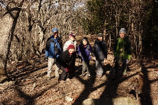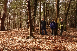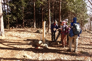 | 長谷寺〜大蔵経寺山(塩山・甲府北部) 木曜「健康」登山としては、寒い時季には甲府周辺の標高の低い山をのんびり歩きましょう、というので選んだのが大蔵経寺山だったが、しかし大蔵経寺からのルートではやはりちょっと面白くないと、山の東麓にある長谷寺(ちょうこくじ)からの周回コースを設定した。このルートは3年前にひとりで歩いてみたことがある。正月ということで、まずは女人高野長谷寺にお参りしてからの登山となった。 長谷寺からの周回ルートでは、道標に従って素直に登れば大蔵経寺山のずっと北に出てしまう。大蔵経寺山の頂上とされているところは、三角点信仰を絵に描いたような頂上で、すなわちすぐ北側にさらに高い場所があるにもかかわらず、ただ三角点があるというだけで頂上とされている。したがって一度通ればわざわざもう一度という場所でもないが、初めてだという人がいたので立ち寄ってみることにした。近道をしようと無理やり足場の悪い斜面を這い上がったが、これが「健康」登山だろうかという疑問の声があがった。ま、予期せぬことが起こるのが山のいいところである。 甲府市街北側の山の例にもれず、大蔵経寺山も樹林の雰囲気はいい。山火事跡もかなり植生が回復しているように見えた。稜線に出ると風があって、南風ではあったがだんだんと冷たくなってきて、のんびりと昼休みというわけにはいかなかった。 昨日の最高点906mには御料地境界点があって、それに「字深草山」と彫られているからだろう、深草山の文字がテープに書かれて木に巻きつけてあった。しかし私は岩堂峠南の1042mを深草山とするほうがいいと思っている(http://yamatabi.info/2014d.html#2014d2)。ここに初めて来た1994年には、東側が伐採直後で大展望があった。今では植えられたヒノキが育って、展望は皆無である。四半世紀とはそんな歳月なのだろう。 当時は少々藪っぽいところもあって道標も皆無だった、大蔵経寺山から続く稜線は完全に一般道となった。はっきりした一本道に目ざわりなくらいのテープがあって見識を疑うが、私のガイドブックに要害山から大蔵経寺山への案内をしたこともここを一般コースにしてしまった原因のひとつだからあまり大きなことは言えない。最初の版では道標もなく経験者向きとしたのを、何度目かの改訂では書き換えた経緯がある。 ただ径を歩いていればよかったのも906mまでで、ここからは一般道と別れていっぱしの藪尾根をたどる。難しくはないが、地形図なしというわけにもいかない。地形図で沢沿いに通じる破線があるが、ほとんど跡形はない。御料地だったからか、ところどころの自然石に境界を現す字が彫られているのが面白い。尾根上に大岩が累々とあるのは、兜山などの稜線と似ており、このあたりの地質の特徴なのだろう。 尾根筋はやがて車道に合流する。あとはいっさい車通りのない舗装路をぶらぶらと西日に明るい甲府盆地に向かって下るばかりだった。 -------------------------------------------------------- 大蔵経寺山あたりの自然石に境界などを示す字が彫られているのを見るが、906m峰から東に派生する尾根にも岩にも多い。御料地の境を示しているのだろう。 そのひとつがこの写真で、「カウ」「境」「シヅメ」の文字が見られる。「シヅメ」は「鎮目」だろうが「カウ」は何だろう。「甲運村」の「カウ」だろうか。それにはちょっと位置的に変に思われる。 素人が彫ったものではなく、れっきとした石工を連れて行って彫らせたのだろう。この写真にある岩は人力ではおいそれと動かせるような岩ではないが、なぜ字が斜めになっているのだろうか。わざわざ斜めに彫ったわけでもあるまい。100年もたてば地面が動くのだろうか。考え出すとおもしろい。 |