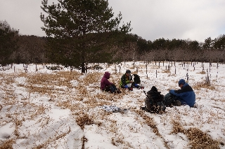 | 吉田山(茅野市市民の森)(南大塩) 霧ヶ峰からの帰りには長野県道諏訪茅野線を通ることが多い。この道路の南側は前々から地形図を眺めて気になっていた。それは、私が山間のなだらかで広い場所を好むからである。そんな場所はたいてい開発されてしまうものだが、それらしい形跡もない。 その道脇に「市民の森」と書かれた新しい看板が現れたのはわりと最近のことである。こんなときはインターネットは便利なもので、調べてみると案内図まで出ている。http://www.city.chino.lg.jp/www/contents/1000000679000/要するにこの山域は市民の森という名前の公園化していたわけだ。この県道側は裏口で、永明寺山に通じる車道側が表口にあたる。表口は以前からあって、裏口が最近できたことで私の目につき、「市民の森」のことも初めて知ったのだった。 吉田山という山名もこの案内図による。もっとも、よくありがちな絵地図でこれでは私のような地形図マニアは満足できないから歩いて確かめようと1年前に歩いて、その後も何度か再訪、全体像がほぼわかった。 実際に歩いてみると林道および作業道をたどることがほとんどで、しかし一般車は通行止めのようなのでのんきには歩ける。広葉樹が多いので芽吹きのころは美しいと思うが、あいにくまだ経験していない。 木曜「健康」登山としては冬の散歩登山には最適な山で、厳冬2月の計画に入れたのだった。3月一杯までは閉山中だというが、歩いて文句を言われるということもないだろう、ゲートがあって鍵がしてあるというわけでもない。 ラッセルというほどでもない積雪があって、雪山ハイキングの気分は上々だった。途中からはスノーシューで歩いた跡が現れた。傾斜がゆるやかな道ばかりだからもう少し積もればスノーシュー遊びにはいいだろう。 吉田山頂上一帯は広場になっていて、桜が植樹されている。いずれ桜の名所になるのだろうか。富士山が見えるように展望台がしつらえてある。最高点には三角点があって点名は「埴原田」である。 頂上に着くころには日が陰って、陽だまりでのんびりというわけにはいかなかった。帰りも同じ道でも面白くないと、途中からは迷路のような作業道を適当にショートカットしながら下ったが、それが楽にできたのは雪のある季節ならではだった。 |