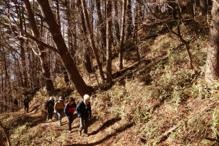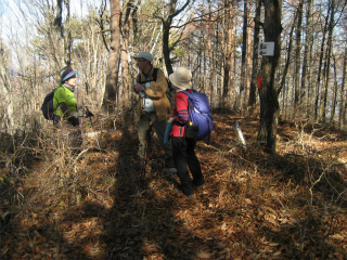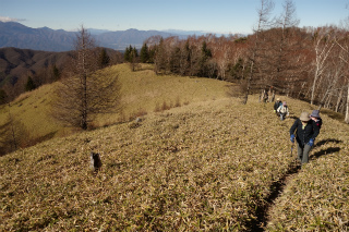 初めて登って以来、大のお気に入りになって、私はほぼ毎年登っている。主稜線東側のおだやかに起伏する地形と樹林の良さには、いつでもうっとりしてしまう。新緑と紅葉には訪れたことがあるが、葉の落ち切った時季は初めてで、林の明るさにもまた打たれた。