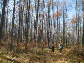 入笠山は本峰近辺のみはにぎやかなのに、ちょっとはずすと、人外境とは大げさだが、まず歩く人がいないようなところがたくさんある。新緑のころもいいだろうなあと、その頃にもまた訪れたくなった。