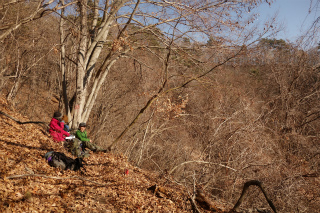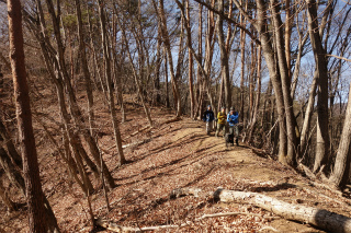 | 斑山(若神子) 安曇野の山に北アルプスでも眺めに行こうかと計画した光城山と長峰山だったが、参加人数が少なくては遠路は無理だし、雪白き山々の展望が楽しめるようなすっきりとした青空が拡がるわけでもなさそうだ。そして参加者に早く帰宅したい都合がある人もいたので地元の山を物色した。 車を出してくれる人があったので縦走がいいだろうと思いついたのは毎度おなじみではあるが斑山だった。初めての人もいるし、初めてでなくとも変わった経路を使えば新味もあるだろう。北から登って西へと下ることにした。 数えきれないほど登った斑山だが山中で他の登山者に会ったことはない。しかし今回は下山中に東側から登ってくる二人組がいた。へえ珍しいとよく見たら旧知のFさんたちで、なんだ同じ穴のムジナだったかと笑った次第。 下から見ればどうってことのない斑山も、山中に入ればなかなか奥深い、今回は下山中にまだ歩いていないはっきりした踏跡を見つけた。次の機会にはこれを歩いてみようと思う。 |