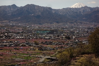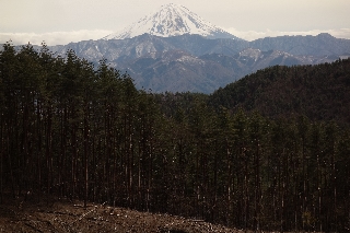 | 兜山(塩山・甲府北部) 火曜日は春には珍しいすっきりとした青空で、お客さんと甲府盆地に花見に出かけたら、桜はそろそろ散り始めとはいうもののまだ見頃といってもよく、桃の花は各所で満開で、文字通りの白峰三山を背景に、甲州の春ここに極まれりという感じがした。 明くる水曜日が4月には珍しい大雪で、また木曜日が快晴になるというのだから天候の激変ぶりといったらない。花に嵐ならぬ雪とはまた面白い、これで晴れるなら桃源郷のまわりが雪景色という、滅多に見られない風景が見られるだろうと思ったらそのとおりになって、兜山の計画は願ってもない日に当たったわけである。 この時季には桃源郷を巡る山々に登るのが長年の恒例となっているが、桃源郷がそれらしく見えるのはせいぜい丘陵くらいの高さからである。だから、山というよりはその行き帰りの行程で甲府盆地の春を味わうことになる。 さすがにもう降らないだろうとタイヤは夏用に交換してあったから、降雪後の冷え込みで凍った雪に、車を出すのに少々苦労させられたが、大通りに出たら夏タイヤで問題はなかった。高い山が白いのは当たり前だが、今年は雪が少なかったから、中低山は今年初めてといってもいいくらいの雪化粧である。 兜山は三角点信仰の典型的な山で、頂上でもないところに山頂標識がある。そこで今回は三角点やその近くの展望台は無視して、直接最高点に登ろうと思った。当然、一般コースを避けて夕狩沢からである。 夕狩沢は上級者向けと入口に標識がある。来るたびに荒れてきており、標識も朽ち、マーキングも薄れているからますます上級者向けかもしれない。沢沿いに歩いているうちは何とかなるが、難しくなるのは林道が錯綜するようになってからである。もっとも、今どきはGPSを持っている人が多いからどうってことはないか。 今年初めての新緑を味わいながら夕狩沢を遡った。林道に合流した後、棚山分岐からわずか、三角点方向へ向かう道を見送って、作業道を登っていった。やがて道がなくなるとヤブを漕いで急登する。途中、大岩の上からは展望が開け、奥秩父や大菩薩が真冬にはまったく見られなかった白い峰々を連ねていた。 稜線に出たところがすなわち頂上で、かつては踏跡しかなかったのが、しっかりした径が通じていた。しかし最高点を表すような標識はまるでなかった。標識をつけたがる人も三角点信仰者ということか。 陽だまりで昼休みをしたのち岩堂峠方面への径を下ったら伐採地に出て富士山がすっきりと眺められた。そのまま伐採地を適当に下って沢沿いの林道に出る。あとは山裾を回って起点に戻った。要するに兜山をぐるり一周したということになる。この時季の兜山だから他の登山者も少しはいるかと思っていたが、誰ひとりと出会うこともなかった。 せっかくここまで来たのだからと、帰りには盆地一周ドライブをして、甲州の春の風景を満喫した。 |