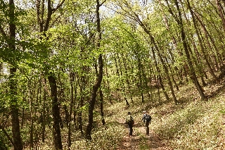| 倉沢山・塩水山(川浦) 横山厚夫さんの『一日の山・中央線私の山旅』(実業之日本社)を読んだのは、私が山歩きを再開した87年だったが、その一項にある「倉沢山の三角点峰」を実際に登ったのは7年後の94年のことだった。それだけ年数がたっていたのは、こんなマニア向けの山に登るには、少々修行が必要だったということだろう。 この、今では塩水山と呼ばれることの多い山を、そのときは北側から往復しただけで、地形図にある倉沢山までは行かなかった。車を使えば短時間で済んでしまう山なので、なかなかそれだけのために出かけようという気にならなかったからである。しかし6年前の秋口に木曜山行で金峰山に出かけたとき、道路が通行止めで仕方なく小楢山に転進して、さすがにそれだけでは時間が余る。これは絶好のチャンスと皆さんをそそのかしてオマケのようにやっと登ったのであった。https://yamatabi.info/2013i.html#2013i3 ところが、これがオマケというにはもったいないような山で、ことに山の南側の樹林がすこぶる良かった。これは新緑のときにまた来なければなるまいと思っていたのが、もうそれから6年も過ぎていたのである。最近ではあっという間に数年が過ぎ去っていることが多い。 やっと計画に入れた今回、偶然にもこの山のことを教えてくれた横山夫妻がご一緒してくれることになったのだからその奇遇にはあらためて驚かされる。本に書かれていたのは37年前の山行で、当時は大伐採ですこぶる展望のいい山だったらしいが、その展望は今いずこ、しかし代わってなんとも美しい林が拡がっていた。 ことにご神木にでもなりそうなミズナラの大木が多いのには目を見張らされる。至るところで水がしみ出しているような湿潤な地面のせいだろうか。ミズナラは芽吹きが遅いから、目に沁みるような緑が今しも盛りであった。ここにはまた来たいねという声がしきりであった。 |