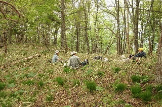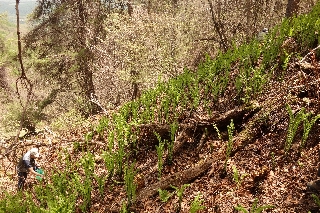 | 八千穂高原散策(松原湖) 去年の6月に八柱山に登った帰りにコゴミの群落を見つけた。去年はあらゆる植物が10日ほど早く成長した年で、すでに採りごろは過ぎていた。よし、ここには来年また来て収穫しましょうというのが昨日の計画になったのである。 それだけでなく、ここが健康山歩きのコースとして優れているのももちろんあって、しかもコゴミが採りごろならあたりの新緑は言うまでもなく素晴らしいに決まっているのである。 横山夫妻が木曜山行に参加するのは久しぶりだった。そして計画の日と横山夫妻の結婚記念日と山歩大介さんの誕生日とが重なったのはなんとも偶然で、しかもそんなお祝いの日にのんびり歩くには最適のコースときている。さらにはめずらしく木曜山行ご常連も都合がついて、近頃にはない総勢9人での出発となった。結婚記念日といってもそんじょそこらの記念日ではなくてなんと60年すなわちダイヤモンド婚だというのだからすごい。 これ以上さわやかな日もあまりなかろうという好日だった。八千穂高原の白樺の新緑は今しも盛りというのも変な表現だが、要するにもっとも初々しい色である。最近のわがお気に入りのコースは、急登はまったくない、地面は柔らかい、林の雰囲気がいい、人がいない、危険度ゼロという、願ってもない散歩道である。 お目当てのコゴミは、まだまだ先端が巻いたままの株が多かった。せっせと収穫して各々袋をふくらませた。コゴミは冷凍保存もできるのでしばらくは食卓が豪華になるだろう。 収穫後は、道脇の適当な広場で輪になって、横山夫妻ダイヤモンド婚および大介さんの誕生日祝いをした。本来なら一杯やりたいところだがそれは我慢して、皆が持ち寄ったさまざまな甘味で乾杯した。標高1700m、快適な新緑の宴会場だった。 今年はまだカッコウの声を聴かないねという話をしていたら、カッコウの奴、どこでそれを聞いていたのか下山途中には啼き出したのである。なかなか気の利くカッコウである。 というわけで、実にケッコウな山歩きでした。 |