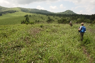 ところが雨で流れてしまったので、10月の横浜YYグループとの山行のときに初めてそのルートで歩いてみた。これが思った通りの素晴らしい周回ルートで、今度はぜひとも盛夏にもう一度と思ったのが昨日の計画になった。もっとも、どうせニッコウキスゲは期待できないから少しずらして7月のはじめに計画していたのが、この梅雨空続きで2週も流れてしまい、しかしそれが怪我の功名となって、鹿柵の中だけではあったもののニッコウキスゲの盛りと出会えたのである。