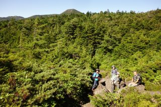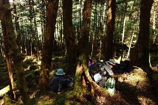| 冷山(蓼科) 去年の夏は今年以上に暑くて、木曜山行では標高の高い麦草峠付近にばかり出かけていた。冷山もその一環で登った山で、名前からして涼しそうなのが気に入ったのと、まだ登ったことのない山だったので興味もあったのである。また、山域内にあるという黒曜石の露頭が見つけられたらいいなと思っていたが、これは結局のところどこにあるのかはわからなかった。 ともあれ、そのときに選んだルートの雰囲気が気に入って、これは納涼登山には最適だと今年もまた登ろうと7月の計画に入れたのだが、例の長梅雨で順延しても中止、それで9月の計画に入れた。 木曜山行の日が晴天なんていつ以来かと思う、さわやかな朝だった。ところが蓼科方面に向かうにしたがって雲が垂れ込め、北杜市あたりの青空がうそのようになってきた。展望を楽しむ山でもないからまあいいかと思っていたのだが、車で登るにつれて雲の上に出て、青空が拡がった。それならと、最近まわりが伐採されて展望台の面目が復活した日向木場展望台にまず寄って、山々の大観を楽しんだ。日本アルプスと御嶽山までが雲海に浮かび、これはなかなかないことだから、早朝出発でやってきた名古屋のNさん、冷山にご執心だった、東京から参加のTさんも来た甲斐があったと大喜びである。これから登る冷山も目の前に見えている。 冷山には下から登る径はいっさいないので、去年とまったく同じに登ることはできない。それでも合理的なルートは限られているから、ほぼ似たようなところを歩いたのだと思う。ときおり記憶にある風景があった。この山のすばらしいところは、頂上に至るまで一切土らしきものを踏まないところにある。つまり終始苔の上を歩く。柔らかい地面は気持ちがいいが、それでも径のない山は標高差以上に絞られる。 好天だと苔の森も明るい。太陽が見えるので方角を確かめることもなく登っていけた。気温が低くて汗をほとんどかかないのもうれしい。昼過ぎには頂上に着いた。偶然にでも黒曜石の露頭に出会えたら嬉しいことだったが、さすがにこの広い山腹ではむずかしかった。 頂上からはわずかで一般道に出るが、例の北八ツの径で歩きにくいことおびただしい。径のないところより、れっきとした径のほうが歩きにくいとはこれいかに。帰りは、去年目を付けておいた、何かの境界らしき踏跡をたどって出発点に戻った。 |