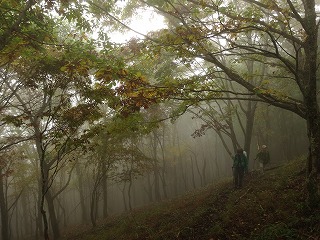 | 虫倉山(柳沢峠) 今週はどこへ行こうかと考えて、勝手知ったる虫倉山も秋だけは行ったことがないのに気づいた。標高からしてちょうど今時分が秋の盛りであろう。最初のころは星糞峠から往復するばかりだった虫倉山も、ためしに東の山麓から登ってみて、静けさは当たり前として、その変化に富んだ樹林の素晴らしさに、以来、登るのは東麓からだけである。 体調およびコロナのせいでTさんがほぼ1年ぶりの参加となったので、好天になればいいなあと願っていたが、大門峠あたりは霧に煙っていた。鷹山まで下るといくぶん霧は晴れたものの、あたりの景色が見渡せるほどでもない。 ま、降らなきゃよしと出発し、幸い降られることもなかった。そして霧の山もそれはそれで風情があったのである。 星糞峠では、あらたに黒耀石がらみの展示場を造る工事中であった。それが完成したあかつきには、この界隈の様相も変わってしまうことだろう。 今回は、最後に黒耀石体験ミュージアムを見学した。さんざん横を通りながら初めて立寄ってみたのであった。さても門外漢には考古学はむずかしい。いろいろな展示を見るにつけ、本当かしらとひねくれ者の疑問がふつふつと湧いてくるのであった。 ズミの花が咲くころ、また訪れてみたい。 |