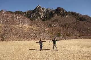 | 瑞牆山麓逍遥(瑞牆山) 八ヶ岳に移住したころ、瑞牆山麓で全国植樹祭があって、それを批判したことがある(参考リンク)。 以来20年、いったい何度この、みずがき山自然公園となった植樹祭会場跡を訪れたことか。そして今では当初の批判の気持ちなどとっくに薄れていることは確かなのである。それだけその景色が当たり前になったと言えるだろうか。植樹祭にからんで周辺に整備された歩道は置き土産とでもいうべきで、まず利用者もいないまま自然に還りかけて、しかし私のような者にとっては立派な道なので、軽い樹林の山歩きに利用してきた。一般に瑞牆山麓の渓谷は、増富温泉側の本谷川沿いが有名で春秋の人出も多いが、この釜瀬川(天鳥川)流域が私の好みで、その理由は明るさである。 久しぶりにすがぬまさんが参加するというので、ならばスケッチに好適な場所がいいだろうと思った。そこで車道が通行止になるので今まで行ったことはなかった冬の芝生広場へ歩いて行ってみようというのが昨日の計画になった。 たどるのは、かつては松平牧場だった場所で、それがいつしか美しい林となっている。牧場跡だけに傾斜は総じて緩やかで、まさしく逍遥というのにふさわしい。径などまったくなくとも、見渡す限りどこを歩いてもいいのである。早く通り過ぎるのはもったいないと何度も休んだ。樹林越しに、近くには瑞牆山の岩峰群、遠くには白い八ヶ岳や南アルプスが見えるのがまた魅力を増している。 たどり着いた芝生広場は完全貸切、すがぬまさんが入魂で作品をものす間、おとみ山と私はとんでもない広さの芝生の上でこのうえなく怠惰にゴロゴロしていたのであった。 |