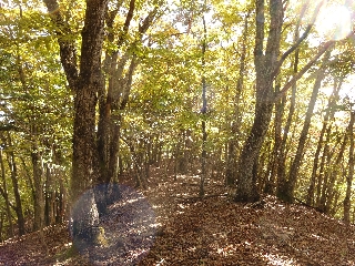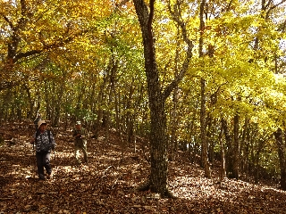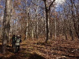 初冬の雰囲気も悪くはないが、その林の良さから、今度はぜひにも新緑に歩いてみたくなる径である。しかし、最後の最後、高差120mに及ぶ1504.9m峰の登りはきつかった。中央分水嶺にこだわるからか、一直線の鉄砲登りを強いられたのである。次回はこの山は省略することにしよう。