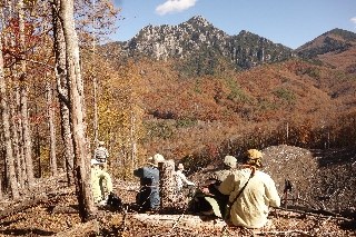こんどはぜひ瑞牆山の裾が黄金色に染まったときに行かねばなるまいと考えたのが木曜山行の計画になった。東京からの参加者があって少々遅い出発となったが、展望場所で長居をしたかったから、そこでちょうど昼時となるのは好都合だった。