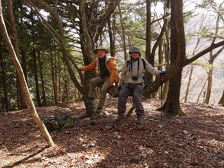 行きつ戻りつを繰り返し、やっと傾斜が緩い尾根に出たらしばらくは安泰だったが、頂上直下の杉の植林地での急登には苦しめられた。むろん径などはない。だが昼をとっくに過ぎてたどり着いた頂上の雰囲気はよかった。東側は植林で眺めはないが、西側は広葉樹で、枝越しに笊ヶ岳など南アルプスの前衛峰がずらりと眺められた。自分の住処より低い頂上だというのに深山に分け入っている気がするのは南アルプスの圧のせいだと思う。