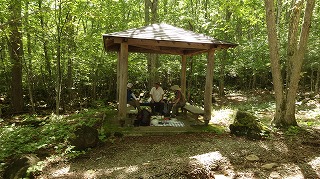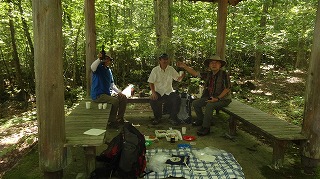 | 米寿祝いの山歩き・八千穂高原(松原湖) おとみ山とN女史の米寿祝登山は、5月に前倒しにして八幡山でおこなった。 これはおそらく人類史上初の快挙だけれども、それを証明する手立てはない。 さてさて、そのおとみ山がめでたく正式に米寿を迎えたというのだから、今一度お祝いをしようと、山もお祝い向きに変えてしまった。ちょうど1年前、横浜YYさんたちと一緒におとみ山の生前慰霊祭を八千穂高原でやった。道がよくて、楽で、雰囲気がよくて、あづま屋があって、誰もいなくて、と実にこんな時にはおあつらえ向きのコースだと思ったので、今年もまったく同じように歩くことにしたのである。 久しぶりの好天の木曜日、八千穂高原への道沿いの木々も少し色づいて気温は高いものの秋の気配が漂っている。整備された山道をのんびりと登って1時間、会場のあづま屋に到着する。男4人の、それだけに遠慮のない大放談が延々と1時間以上続き、持って行ったビールやワインもきれいに空いて、もう1本あったらなあと思ったが、年齢を考えればそれは飲りすぎというものでしょう。 最後は気分よく白樺林を散歩して良き半日を終えた。 |