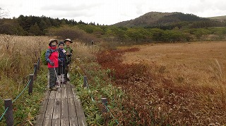 | 八島湿原周回(霧ヶ峰) 夏以降としては初めてではないかというくらいの好天が先週の木曜以来数日続いて、今週の木曜日はまたまた悪天の周期に入ってしまった。 名古屋のやまんばさんと神戸のN女史が久しぶりに遠路はるばるおいでなので、雨の降らなさそうなところはないかと探したら、どうやら北へ向かえば多少は良さそうだというので、いろいろな候補を頭に入れて、まずは霧ヶ峰へと上ってみた。 朝方の地元では風がわりと強かったので、草原の吹きさらしを歩くのではかなわない、森歩きがほとんどの和田峠越えあたりが適当ではないかと思っていたら、池のくるみまで来ると、さほどの風もなく、遠望こそないものの霧ヶ峰界隈の展望に支障はない。 そこでゼブラ山にでも登ってみようかとなった。調べたら木曜山行で行くのは7年ぶりである。たわらさんの写真集にその様子がある。草紅葉の盛りを愛でつつ歩く木道はまだ付け替えられて間がないようだ。 木道が終わってキャンプ地に出ると傘が要るくらいの雨が降ってきた。山で降られると嫌なので、八島湿原一周に計画を変えて歩いているうちには薄日も射してきたのだから皮肉だったが、一周し終えるくらいには本格的な降りとなったので結果オーライではあった。 N女史の、広々としたところを歩けて満足、との言葉に救われた今週の木曜山行であった。帰りがけにはおまけで旧中山道の接待へ立ち寄って、わずかながら歴史散歩もした。 |