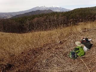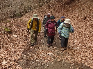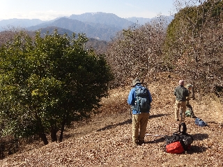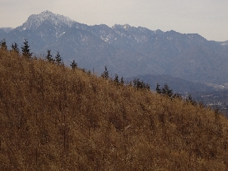 | 後ガキ山(甲府北部) 水曜日は最高の天気で、木曜山行に参加しようと各地から前泊でおいでになった方々にとってはすばらしい車窓風景が楽しめたことだろう。私も所用で茅野市まで出かけ、ことに北アルプスの白さには目を奪われた。 さて、たった3人で江戸時代(つまり265年)という、前代未聞の年齢層が参加とあっては、いったいどんなところがいいだろうと少々悩むことになった。甲府の大笠山なんかは好適と思われたが、問題は祝日だったことで、甲府のことだものたいした人出があるはずもないが、できれば誰もいないにこしたことはない。 そこで思いついたのが、今年の新年山行で歩いた後ガキ山だった。あそこなら、休日でも人はまずいないだろうし、行程もごく簡単である。それに前回には参加しなかった人ばかりなのも好都合である。 南アルプスあたりは半分雲に埋もれていたが、肝心の金峰山はうっすらながら見えていたのは、後ガキ山あたりが御嶽信仰の道が通じていた山域だと思えば上出来だったといえるだろう。江戸時代に旺盛を極めた御嶽信仰の地に、3人で江戸時代の人たちが集結したのもまた一興だった。 前回には気づかなかった石祠を頂上直下で見たのも収穫だった。大伐採地からの風景は、さほど遠くない将来には隠れてしまうと思えば今のうちに行っておく価値もある。 それぞれが遠くへ帰郷するので早めに下り、なお時間に余裕があったので、金桜神社に参拝、昇仙峡を見学しつつ甲府市街へと下った。 |