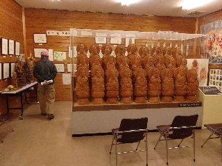 | 丸山に登り、木喰上人の里へ(切石・精進) ヒルの出没しない冬の間に富士川沿いの山に行こうと地図を眺める。名所旧跡が記入されているグーグルマップをまず眺めることが最近は多い。それで当たりをつけて地形図で確かめる。 木喰上人のことは山梨県に住んでいるから耳にはしていたが、詳しく調べたことなどなかった。グーグルマップに生家や資料館(微笑館)があったので、それが下部の丸畑にあることも初めて知った。 ふーん、ならばそこへ山をからめて行く方法はないものかと地形図を調べ、いい方法を思いついた。すなわち、下部隧道から尾根に取り付き、金毘羅社のある663mの丸山に登ったのち、丸畑の微笑館を訪ねるという方法である。 何日かぶりに再び冷え込んだ朝、山梨県では南国の、富士川沿いの山に行くには絶好の日よりである。国道52号を延々と南下していた頃にくらべると、中部横断道のおかげで1時間あまりで下部の人になっているとは隔世の感である。 富士川沿いには山上集落が多く、かつては山の上まで耕して畑にしていた。それらの多くは耕作放棄地である。去年登った鴨狩津向の城山でも畑の跡を見たし、昨日も、ここは畑だったのだろうなあという場所がいくつも山の上に残っていた。そんな場所からは普段見慣れぬ方角からの山々の景色が興味深い。それにしても、自分の住んでいるところより低い場所なのに、なんと山深く感じられることだろう。 明るい尾根筋には薮もなく、実にいい気分で歩けた。丸山頂上に建つ金毘羅社に参拝し、その横の陽だまりで早い昼休みとした。あとは里道を下るのみ。途中の微笑館に他の観覧者はもちろんおらず、お茶まで出してもらって歓待された。駐車場に車がないのを不審に思われたが、山伝いに歩いてやって来る者などまずないからだろう。 この地には再度逆側から縦走してくるつもりなので、木喰上人の生家を訪ねるのはそのときとし、道の駅へと下ったが、その車道の傾斜のすごいこと。現在、拡幅工事をしているので、微笑館まで車で上がるとき、すれ違いに気を遣うことは少なくなるだろう。 微笑館で木喰上人の概要についてビデオを見た。YOUTUBEを探すと、似たようなビデオがあったが、これは現在上映しているビデオの前に上映していたものだとか。 この人、宇宙人だったのではないかしら。 |