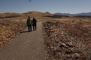 | 霧ヶ峰グライダー場周回コース(霧ヶ峰) 今週の木曜は所用があるので、山行は月曜に替えることにしていたが、あいにく参加希望者はなく、そのかわりといっては何だが、久しぶりに横山さんとKさん夫妻がおいでになったので、番外編的に出かけることになった。 横山さんもKさんも体調などの問題があって、山歩きはとんとご無沙汰だというので、そんなときには昨今ひんぱんに出かけている薙鎌神社展望台がリハビリ山歩きにぴったりである。 とはいえ、それも展望があってこそ、しかし思い悩むこともない絶好の天気予報で、そのとおり、大泉では氷点下となった朝、それだけに冬のような真っ青な空がひろがった。霧ヶ峰に着くと、ここから見える山はすべて見える。しかも数日前の下界の雨が雪だったのだろう、新雪がまぶしいくらいである。 たまたま休みにあたったという鉄人M夫妻から、カボッチョを目指すという連絡があったので、強清水から展望台に着いたところで電話をしたら、ちょうどカボッチョの斜面にかかったところだという。Kさんの倍率の高い双眼鏡を借りてカボッチョの斜面を見ると、なるほどふたつの点が動いていた。エベレストに消えるマロリーとアーヴィンである。 誰もいない薙鎌神社で大展望を楽しみながらたっぷりと昼休みをした。画家のKさんはその間に一枚を描き上げていた。 多少は自分にとっても新味を加えようと、グライダー場の南側の道で戻ることにしたが、この道がよかった。展望もさることながら、きっと陸上選手が練習に使うのだろう、木材チップが敷き詰められて実に膝が楽である。そこを歩く人が昨日はまったくいなかったのだからなんとも贅沢なことだった。 車で帰る道すがら、池のくるみで、ちょうどカボッチョから下ってきた鉄人Mさん夫妻とも出会え、しばしの歓談、めでたし、めでたしとなった。 |