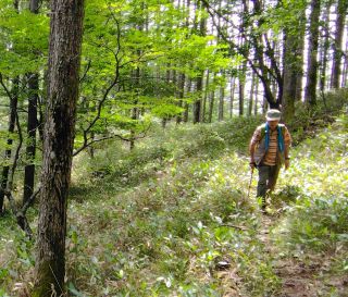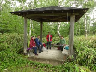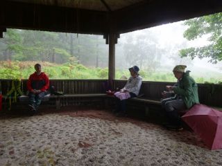 | 大雨の八千穂高原 (松原湖) 確実な大雨の予報に、ふだんなら即刻中止の木曜山行だったが、名古屋のやまんばさんをはじめ、神戸、東京と遠路のお客さんがそのために前泊していて、雨がどうしたと行く気満々で、そのうえ、地元から初参加のMさんまでが行きますとあっては中止するわけにはいかない。 とはいえ、山登りというわけにもいかない。というので困ったときの八千穂高原へ出かけることにした。選んだのは八千穂レーク大回りコースである。白樺をはじめ、終始美しい林の中を歩くのは、雨の中でも風情があった。晴れていたって、それほど歩く人はいないのだから、大雨とあっては人っ子一人いない。 こんな日でもルンルンと歩けるなら楽しみは無限大ですな。雨もまた良し。物事はいい方に考えるべきである。皆さん、お年を召してもお元気なはずだと納得させられた。 |