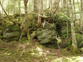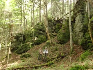| 冷山 黒耀石彷徨 (蓼科) 下界が猛暑日になるというので、これはなるたけ高いところに出かけねばと頭を絞った。そうなればだいたいが中信高原へとなるのだが、思いつくところにはたいてい出かけているから、何か目新しい案はないものかと頭を絞るのである。 今年は和田峠付近にやたらと出かけていて、つい先日には和田峠山から星糞峠を眺めた。つまり黒耀石と因縁が深い。となると思い出されるのは冷山である。 過去2回、冷山には出かけている(2018.8)、(2019.9)。 最初のときには、この山中にあるという黒耀石の露頭をあわよくば拝んでという希望もあったのだが、この広い山中にあてずっぽうでは見つかるはずもなかった。2度目には、冷山の、登る途中の森と、ほとんど土を踏むことがないくらいの苔に覆われた地面が気に入って、もう一度行くことにしたのだった。なにせ避暑にはぴったりの標高と名前である。 その後に読んだのが、『八ヶ岳の三万年 ー黒曜石を追ってー 』(小泉袈裟勝著・法政大学出版局)という、1987年に出版された本であった。これは15年あまりに及ぶ、麦草峠近辺や冷山での黒耀石探査行の記録である。1978年、冷山の露頭を発見するまで、なんと4年もの歳月がかかっているのである。これではあてずっぽうで行き当たるはずもない。 しかし、これら先人の記録から、おおよその位置はわかる。そこで今一度、こんどは頂上を目指さず、森を彷徨して、あわよくば露頭に出合えればと、計画を練った。小泉さんの本の略図には、逆川第一歩道や第二歩道なる道が記載されているが、当時でもすでに廃道に近かったという。それから50年近くたっている今では痕跡を探すのもむずかしいだろう。ままよ、現地に行ってから仔細は決めることにする。 犬も歩けば棒に当たる。運がよかった。苔に覆われた森をさまよううち、その露頭に出くわしたのである。大露頭そのものは黒耀石という感じはしないが、地面に破片が転がってギラギラと光っている。実のところ、この露頭あたりの黒耀石は実用としては質が低く、質の高いのは、ここより上部にあるが、これはおいそれとは見つからないと本にある。 インターネットには少数ながら記録もあるので、人の訪れも間々あることだろう。行きがけは適当に歩いたのでマーキングの類はほぼ見なかった。帰りがけには、露頭から続くマーキングのとおり歩いてみたが、それも途中で見失ってしまった。 ま、この黒耀石露頭は見ものといえばそうだが、そこに至る森がよかった。苔に覆われた暗い森の中にぽっかりとオアシスのような草原もあって、レンゲツツジがわずかに残っていた。こんな空間もおそらくは人の手が加わった名残ではあろうが、夏の暑いときに散歩にきて昼寝でもすれば最高であろう。もっとも、そんな変人は少なかろうが。 横谷峡の上部にある大瀧神社のご神体や、尖石考古館の玄関前にあるのは、この冷山から切り出した黒耀石だというので、帰りがけにはそれらも見学して、実におもしろい半日の山遊びを終えた。 |
