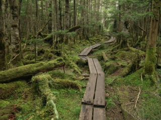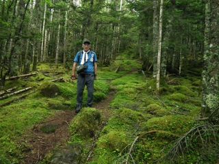 このコースのハイライトといってもいい苔の森歩きでは、近年にないひどい雨に見舞われたが、北八ッでもっとも歩きやすい道だったのが幸いした。森の中で昼休みにして、ゆっくりと苔の森を楽しむつもりが、とてもそれどころではなかった。しかし、驟雨の苔の森なんかわざわざ行くことはないと思えば記憶には残る。