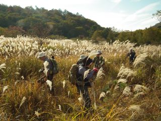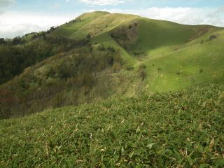 散々登った三峰山から南を見下ろしたとき、あそこはどんなところだろうと気になっていた原っぱがあったのである。ヤブ漕ぎさえなければ1時間もあればたどり着けるはずである。
