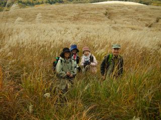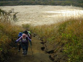木のないその山肌から、山中湖畔の山々ではもっとも目につくこの山は、折しもその目立つ理由のススキが美しい時期を迎えており、三国峠への車道には大勢のカメラマンが三脚を立てていた。