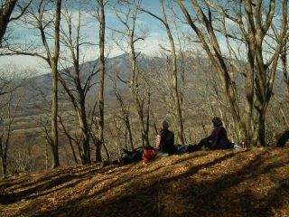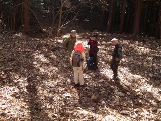 今回、楽に登ろうと選んだ登路は、植林が成長して以前の印象とかなり変わっていた。しかしそれも麓近くのことで、主稜線に出てしまえば、美しい林はそのままだった、深く積もった落葉を踏んで明るい林を歩く気分は今の季節の醍醐味である。