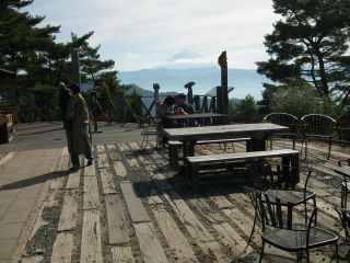 車道終点から急登しばしで、こんどは御岳町からの林道に出、パノラマ台に到着する。これまでまったく人がいなかったのが、一気にロープウエイでやってきた観光客だらけになった。