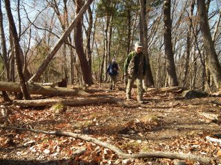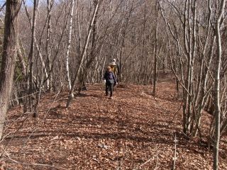 足の不調などで久しぶりに参加するたわらさんが、軽い山歩きをというご所望で、それではと、この上道をさっそく歩きに行くことにした。そもそも傾斜はゆるく、倒木が多かった以外にさほどの藪もなかったのだから、その後手が入ったというならなおさら歩きやすくなっていることだろう。